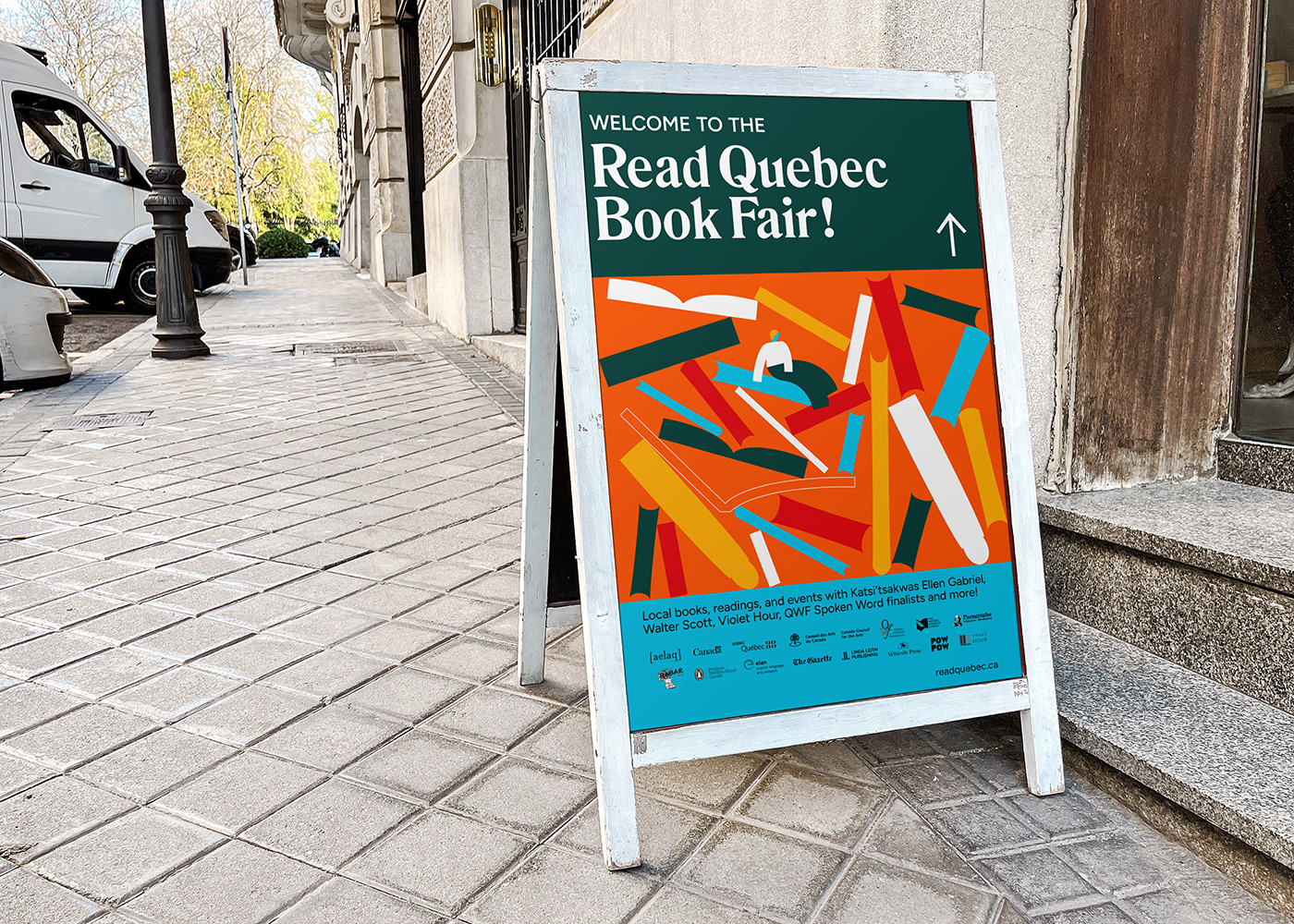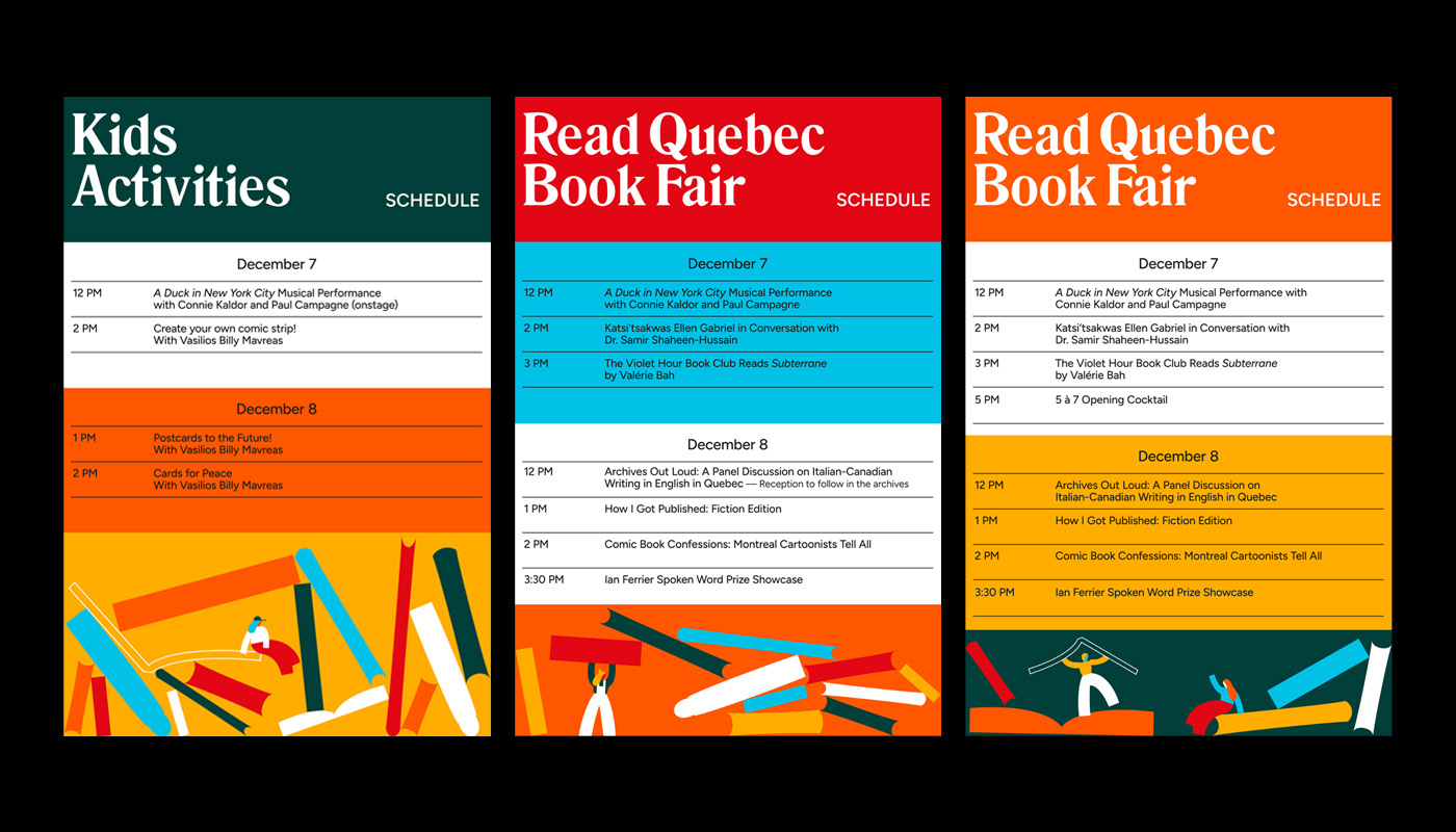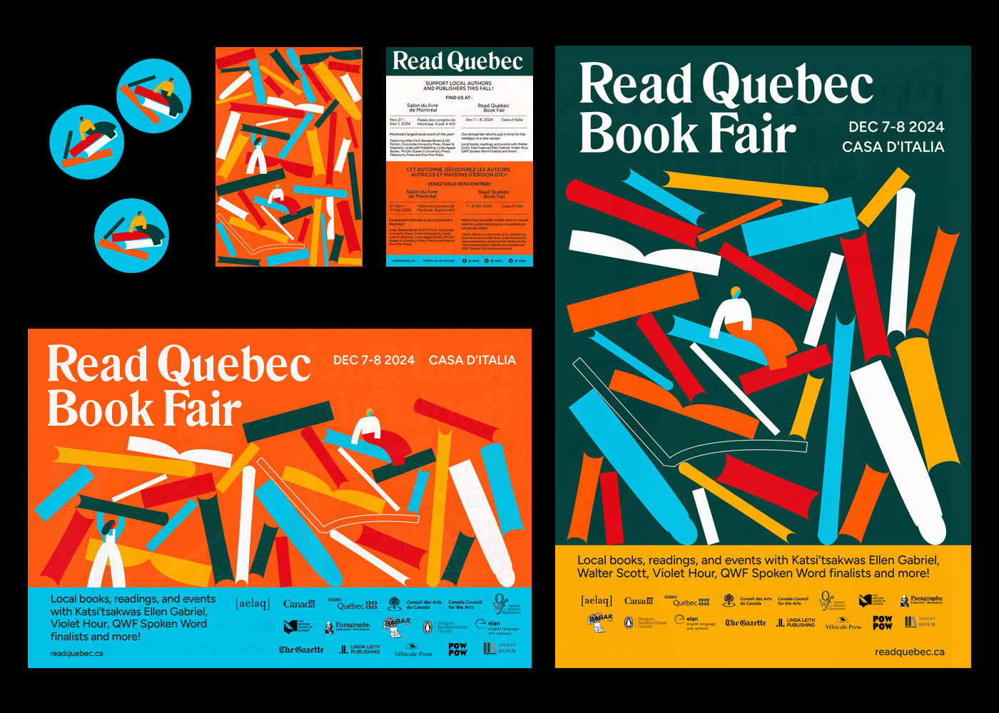 I had the pleasure of creating the visuals for AELAQ's (Association of English-language Publishers of Quebec) presence at the Salon du Livre de Montréal and for their own event, the Read Quebec Book Fair. Visual assets needed for both events were a branded kiosk, web banners for workshops and panels, ads, signage, posters, flyers and a sticker.