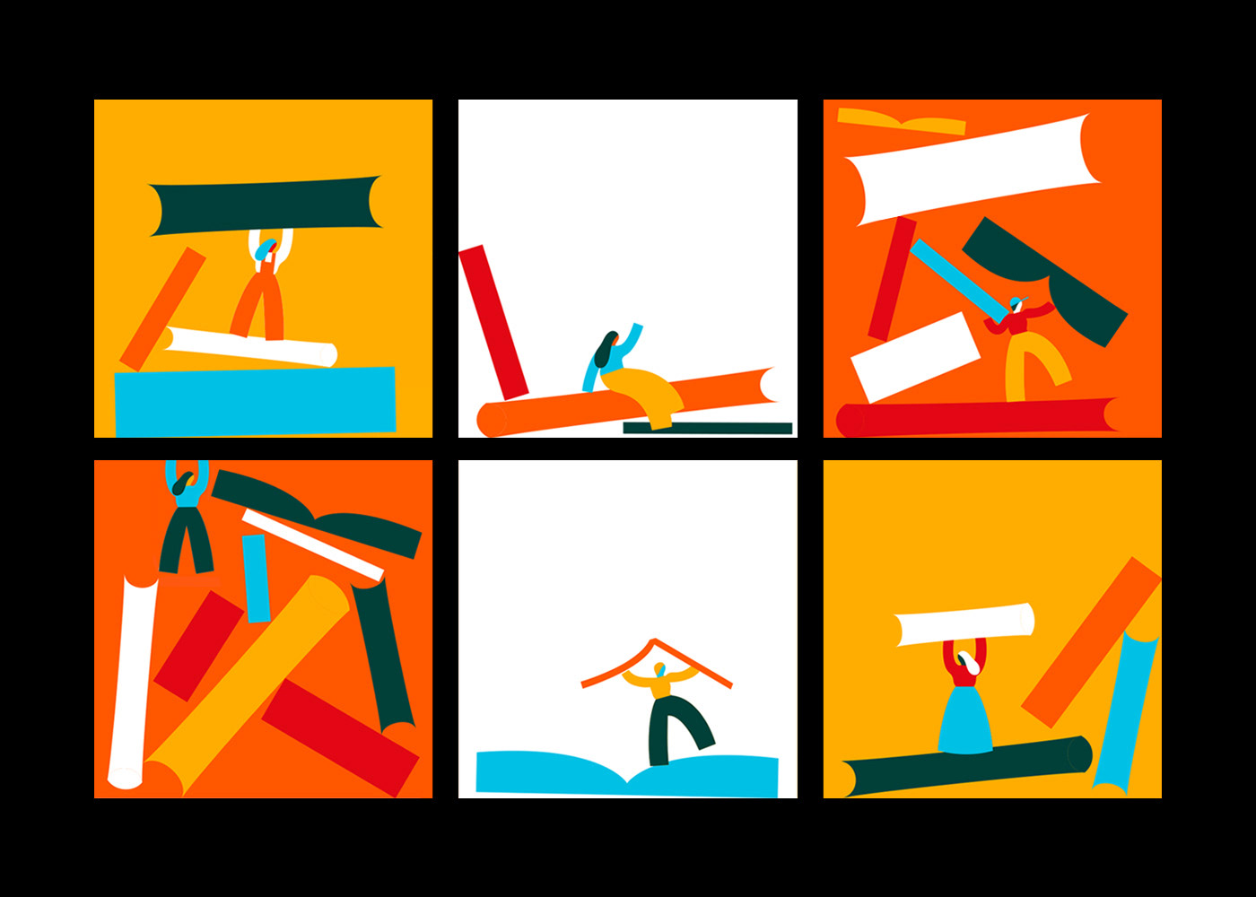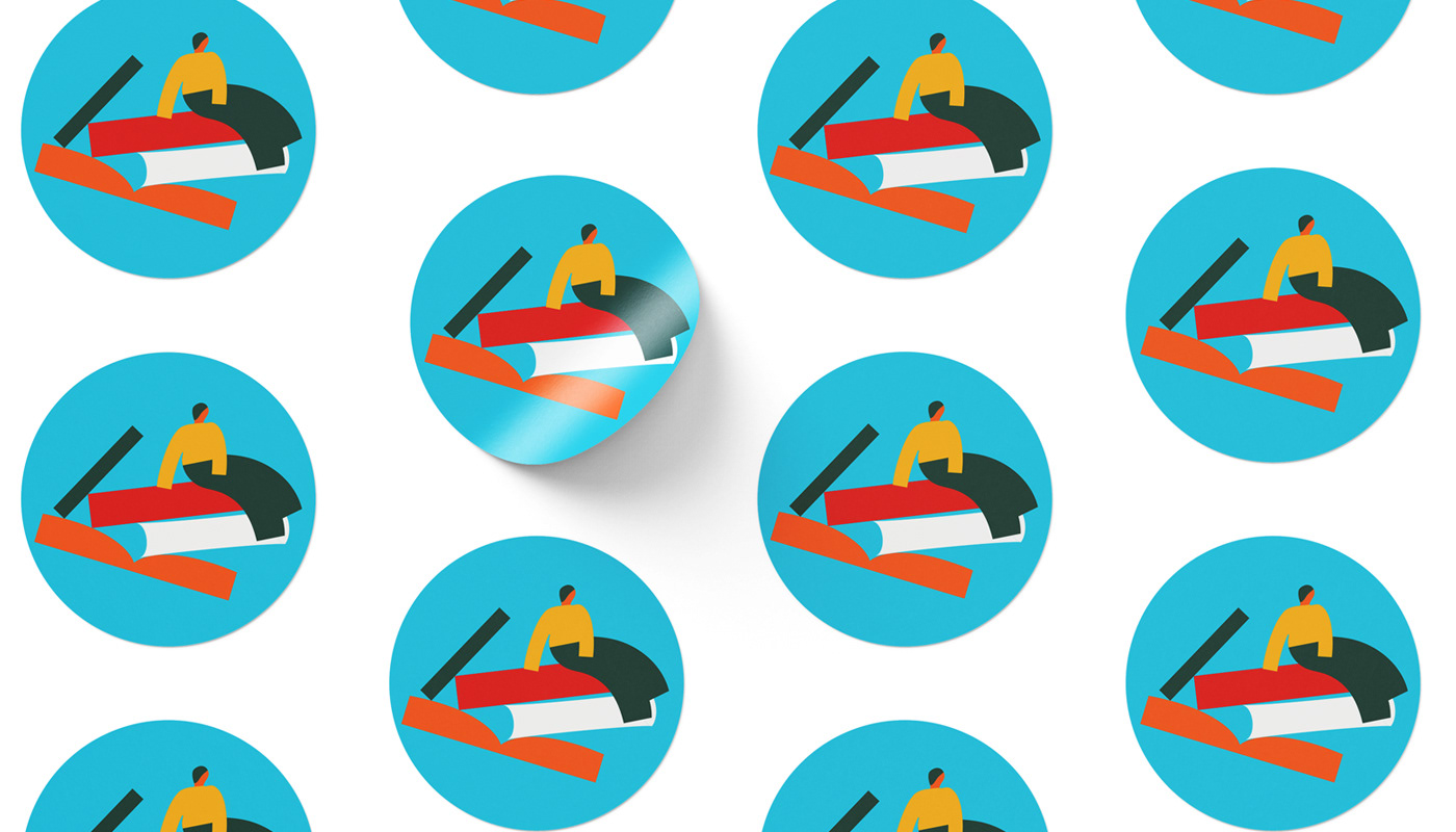 The design concept centers around books falling from the sky and piling up. The books are different sizes, colors and shapes to show variety and diversity. The key concepts here are are Elegance, Liveliness and Abundance. They are conveyed through the amalgamation of a variety of abstract shapes, the use of classic yet modern typography and a warm and inviting color palette.