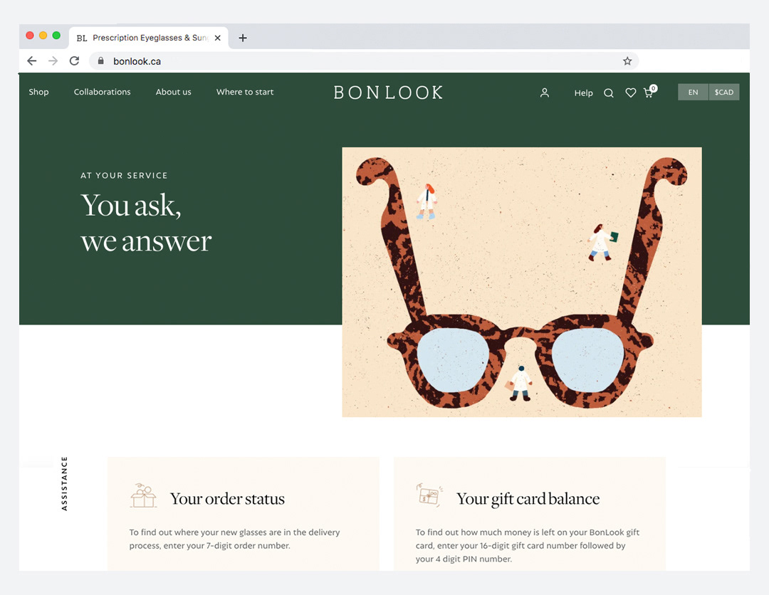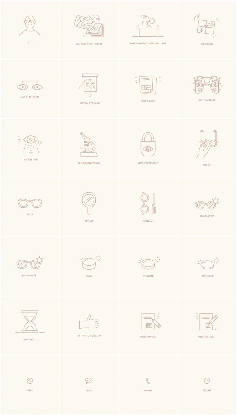 I was asked by Canadian eyewear brand BONLOOK to create 42 illustrations and 30 icons for their new website. The brief was to create inviting and evocative images to elevate the website's content.