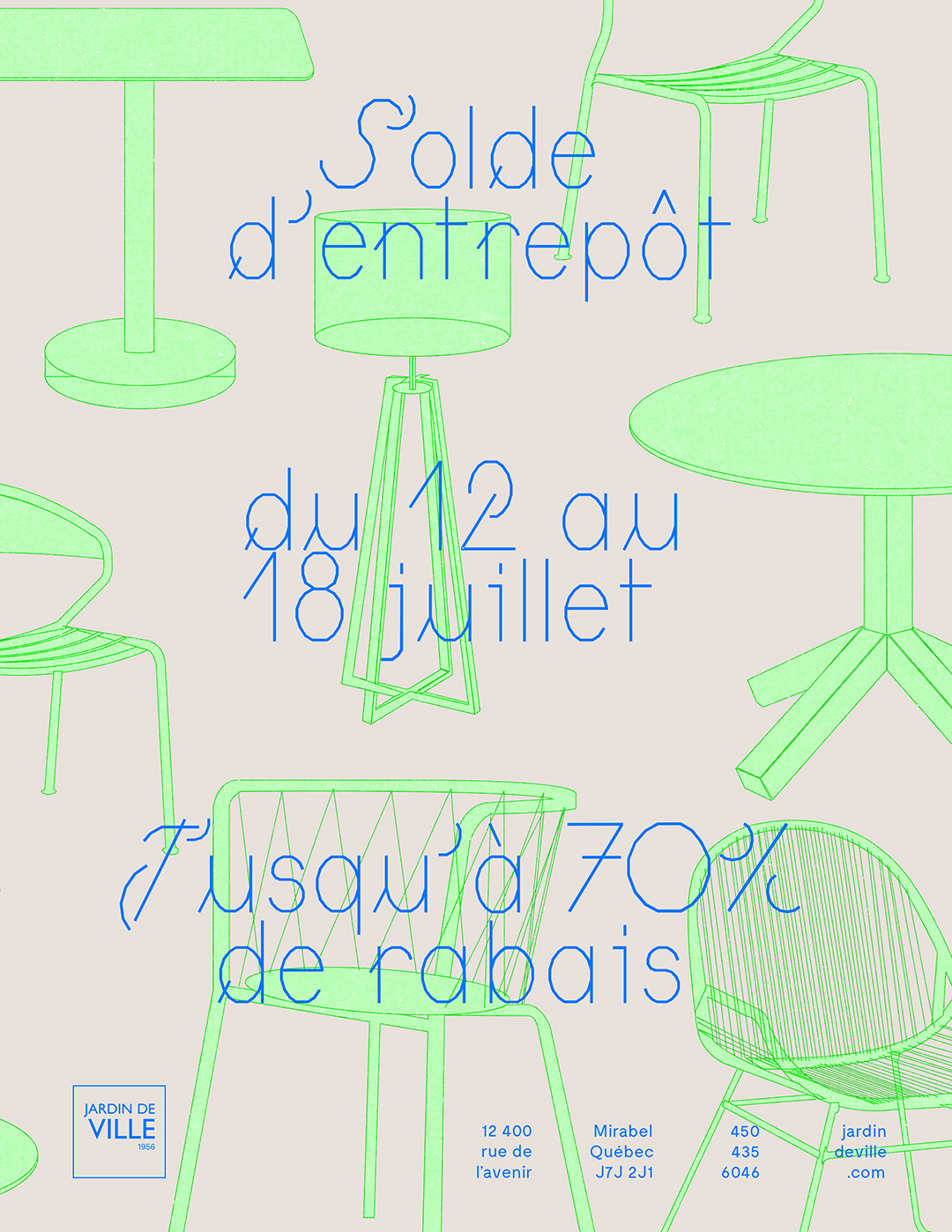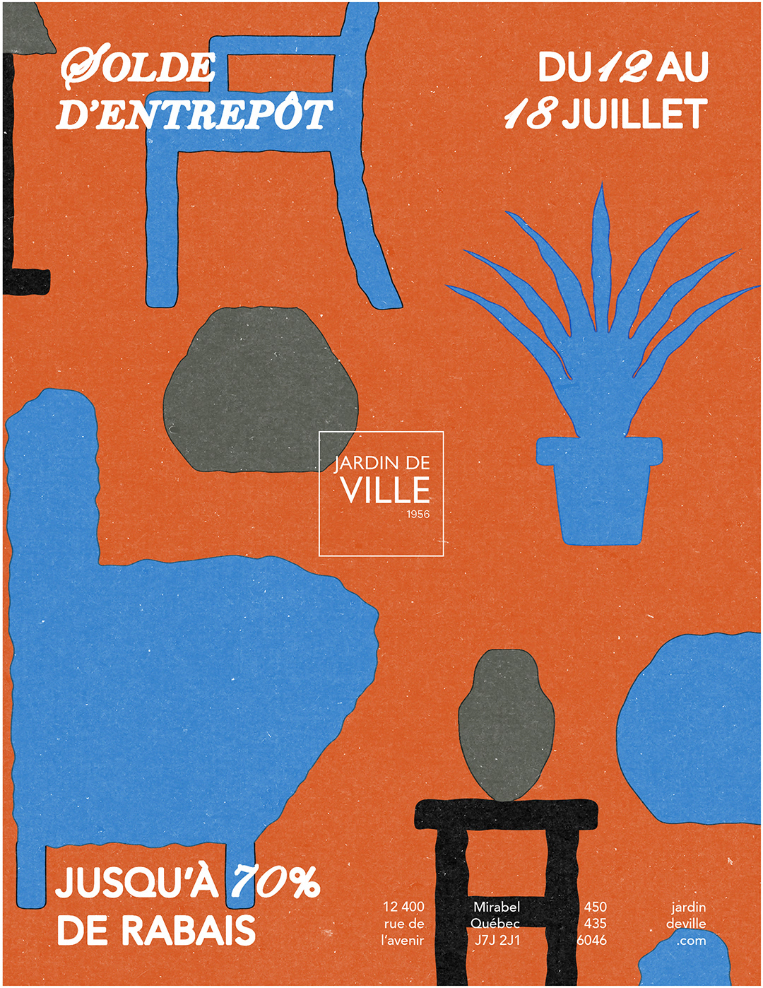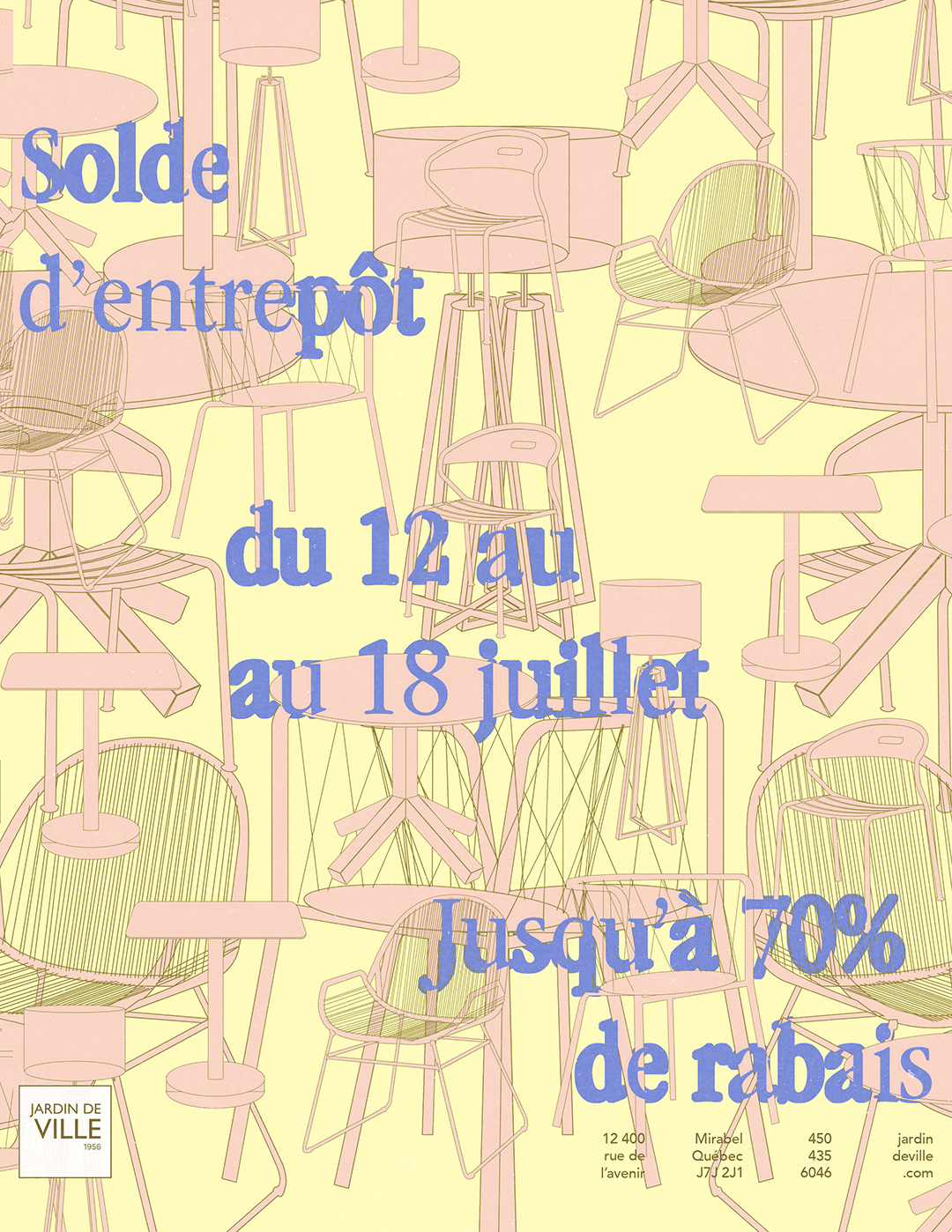 Poster design proposal to promote Jardin de Ville's summer warehouse sale.
