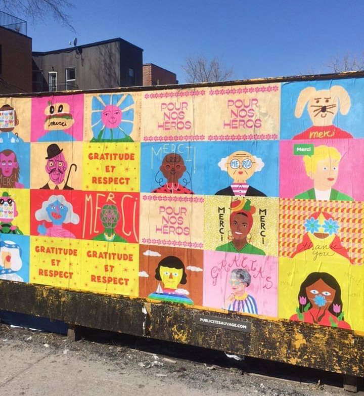 Les couleurs essentielles is a collective project born from a collaboration between several creators whose disciplines rarely mix: children, illustrators from the world of graphics, advertising and contemporary art from Montreal, but also from France, Chile and from Spain. This project exists to thank the extraordinary work of all the essential workers, who risk their lives everyday to keep society running. The campaign includes a video presenting the contributions of all the artists, as well as a series of printed posters, which can be found on the streets of Montreal and Quebec. I contributed a series of three illustrations to the project.