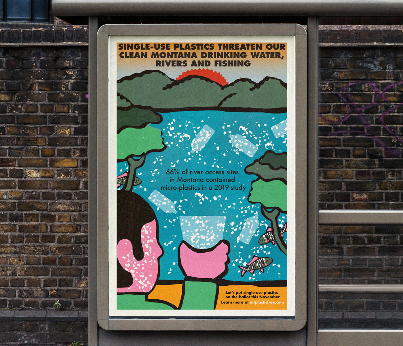 Single-use plastics ban initiative poster for a campaign in the state of Montana to get voters to put single-use plastics on their ballots this November.