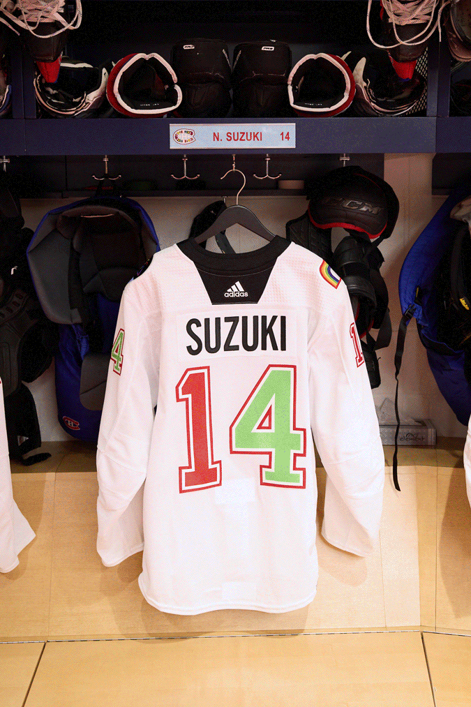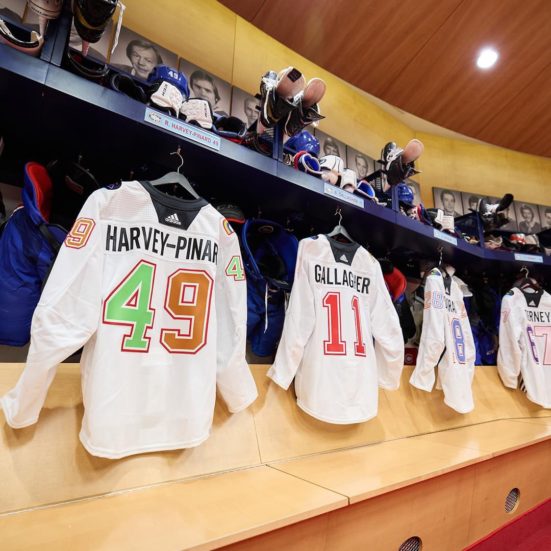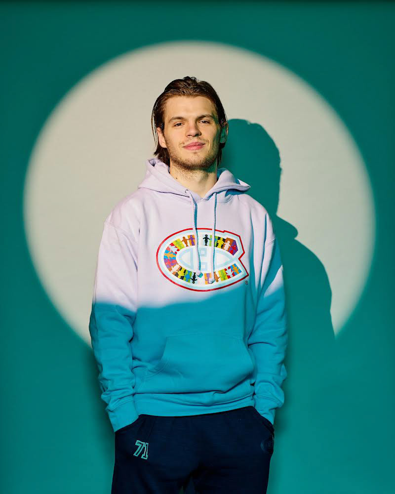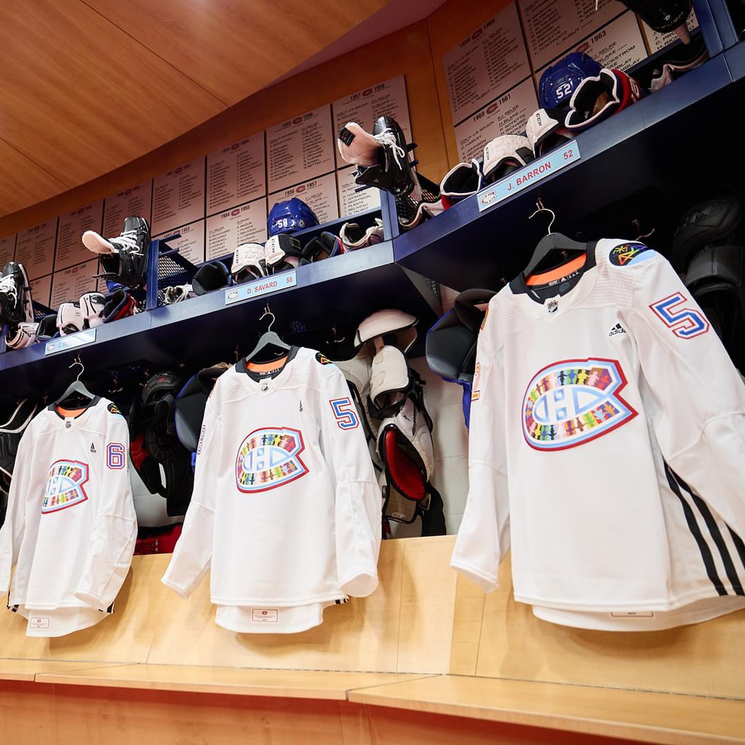 J’ai eu la chance de designer le chandail d'échauffement des Canadiens de Montréal pour leur Soirée de la Fierté, qui a eu lieu le 6 avril. Dans le cadre de cette soirée, j’ai été approchée afin de créer un jersey original, inspiré par le sentiment d'appartenance à la communauté 2SLGBTQIA+, la diversité, la pluralité et l'intersectionnalité. On m'a donné carte blanche pour la création du crest, des deux écussons sur les épaules, ainsi que pour les chiffres au dos des chandails.